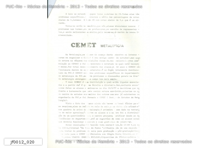 jf0012_020 | 6/1978 | página 05. CEMET Matalurgia. CEMET (Centro de Estudos da Metalurgia). |