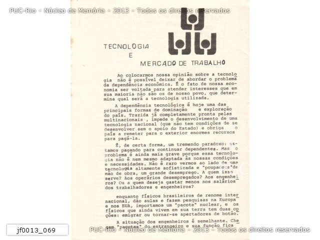| Acervo do professor Alfredo Jefferson relacionado ao DCE da PUC-Rio - jf0013_061 |