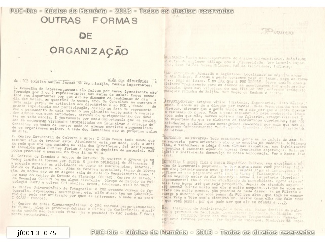 jf0013_075 | 1978 | Publicação do DCE. Informe sobre outras formas de organização na PUC-Rio além do DCE. |