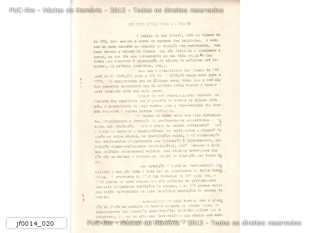 jf0014_020 | 1978 | Problema do aumento das anuidades, abandono dos cursos pelos alunos e a decadência geral do ensino. |