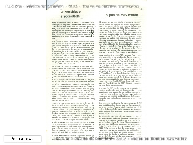 jf0014_045 | 1977 | Página 04. Universidade e sociedade e a PUC no movimento estudantil. |