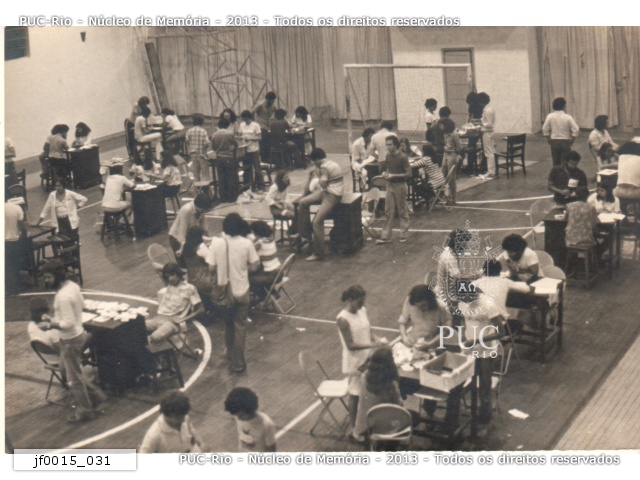 jf0015_022 | 5/10/1979 | Mesas de apuração dos votos. Sala no térreo, no ITUC. |
