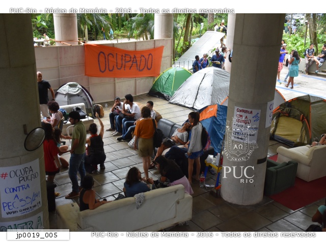 Alunos da PUC-Rio ocuparam os pilotis com barracas e móveis emprestados dos Centros Acadêmicos em protesto contra a aprovação pela Câmara Federal da PEC 241, que teve por objetivo congelar as despesas do Governo Federal por um prazo de até 20 anos. Outras demandas foram agregadas ao movimento "Ocupa PUC-Rio", como as críticas às mudanças no Ensino Médio e os cortes em programas sociais. Diversas atividades, como debates, exposições e exibição de filmes, foram realizadas durante o período de ocupação. As atividades acadêmicas não foram interrompidas e a ocupação foi encerrada na segunda semana de dezembro de 2016.