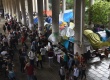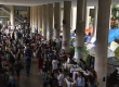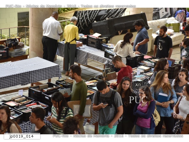 jp0019_020 | 17/11/2016 | Vista panorâmica dos pilotis ocupado e com venda de livros usados. |
