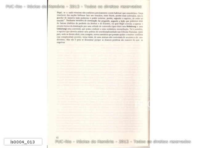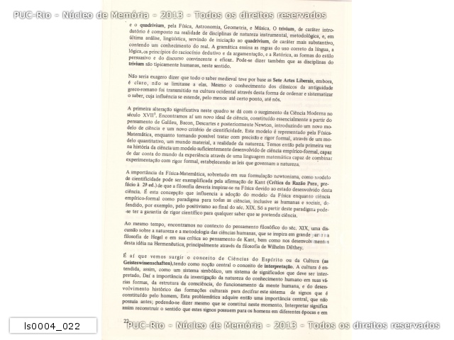 ls0004_013 | 11/1988 | Texto sobre as ciências humanas onde o autor fala, pelo seu ponto de vista de filósofo, sobre a terminologia das ciências humanas e o debate gerado por isso. Nesta página a continuação de uma segunda reflexão, desta vez do ponto de vista de teólogo do autor, sobre a teologia e a relação com as ciências humanas. |
