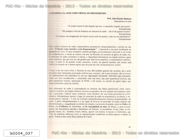 ls0004_037 | 11/1988 | Texto do professor João Ricardo Moderno do Departamento de Artes no simpósio do CTCH sobre a arte e a filosofia. |