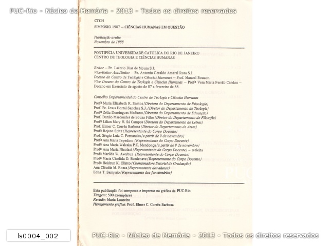 ls0004_002 | 11/1988 | Apresentação dos colaboradores do Simpósio do CTCH com assunto ciências humanas em questão. |