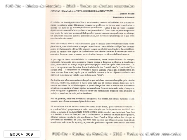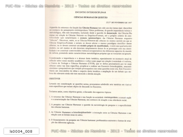 ls0004_009 | 11/1988 | Texto sobre as dificuldades sofridas pelas ciências humanas. |
