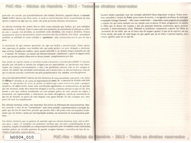 ls0004_010 | 11/1988 | Texto sobre as dificuldades sofridas pelas ciências humanas. |