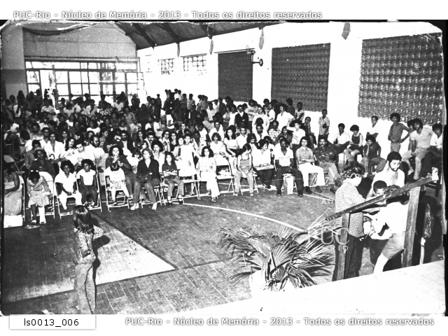Série de fotos da comemoração do natal de 1977, realizada pelos funcionários da PUC-Rio no antigo ginásio da universidade.