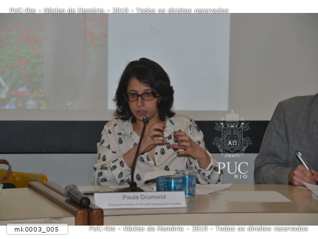 mk0003_005 | 6/5/2015 | A palestrante Paula Drumond (Graduate Institute of Int'l and Development Studies) participa do primeiro painel do seminário sobre O Papel do Gênero na Sociedade Global - Teoria e Prática. |