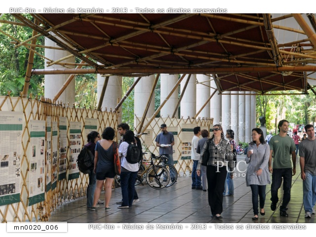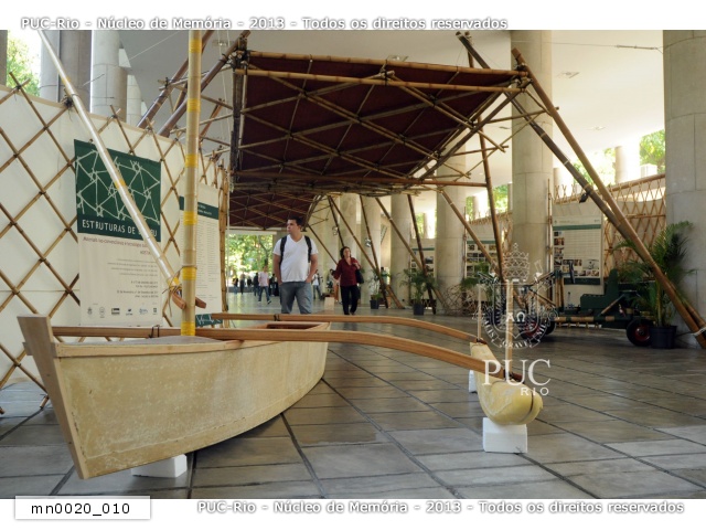 Série de fotografias que apresenta os resultados das pesquisas da PUC-Rio e da UFMG sobre estruturas de bambu através de exposição realizada nos pilotis da Ala Kennedy.