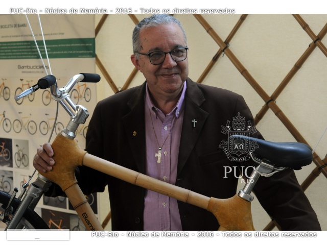 mn0020_014 | 6/9/2011 | O Reitor da PUC-Rio, Pe. Josafá Carlos de Siqueira S.J., em visita à exposição de construções com estruturas de bambu. |