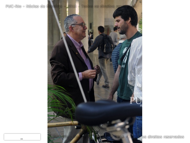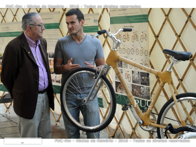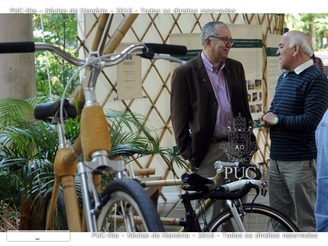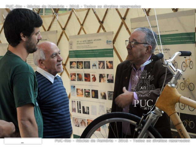 mn0020_017 | 6/9/2011 | O Reitor da PUC-Rio, Pe. Josafá Carlos de Siqueira S.J., em visita à exposição conversa com o prof. Mario Seixas, diretor do Bambutec. |