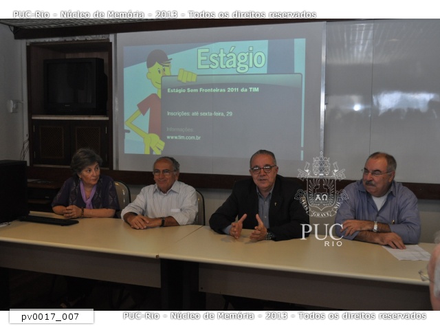 pv0017_005 | 27/10/2010 | Alguns representantes da administração central, professores e funcionários da PUC-Rio acompanham o evento de lançamento da TV PIXEL, inaugurada no ciclo de comemorações do septuagésimo aniversário da Universidade. |