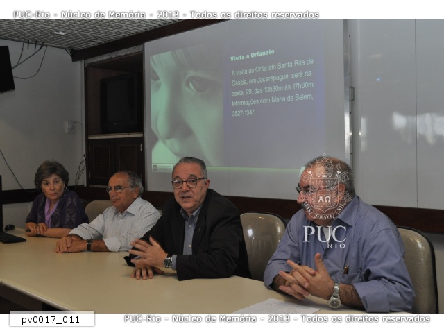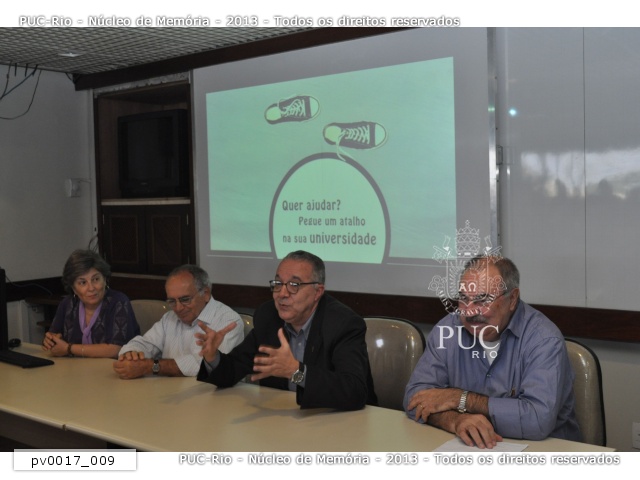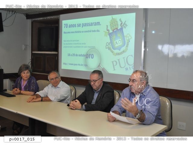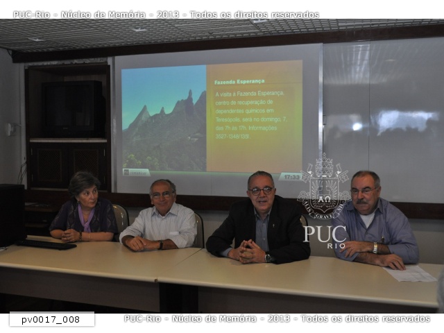 pv0017_002 | 27/10/2010 | Alguns representantes da administração central, professores e funcionários da PUC-Rio acompanham o evento de lançamento da TV PIXEL, inauguradano ciclo de comemorações do septuagésimo aniversário da Universidade. |