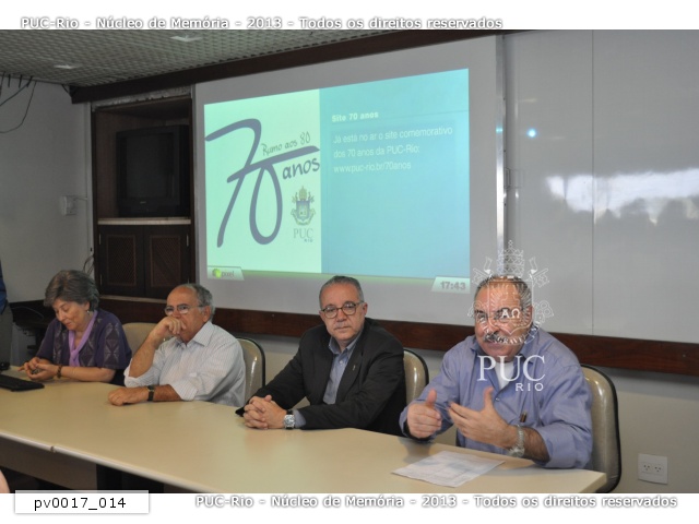 pv0017_007 | 27/10/2010 | A diretora do Departamento de Comunicação e representantes da administração central da PUC-Rio lançam a TV PIXEL, inaugurada no ciclo de comemorações do septuagésimo aniversário da Universidade. |