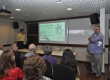 pv0017_001 | 27/10/2010 | O Professor Miguel Serpa Pereira, do Departamento de Comunicação da PUC-Rio, e Pedro de Luna, programador visual da Agenda PUC-Rio, dão início ao evento de lançamento da TV PIXEL, inaugurada no ciclo de comemorações do septuagésimo aniversário da Universidade. |