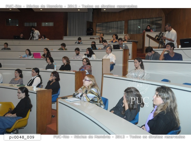 pv0048_009 | 3/10/2011 | A PUC-Rio foi designada para celebrar o Dia Mundial do Habitat de 2011 no Rio de Janeiro. O Auditório do RDC recebeu a mesa de debate Cidades e Mudanças Climáticas, parte da Celebração Global que compunha o evento. Os debatedores foram Alain Grimard, diretor da ONU HABITAT na América Latina e Caribe, o reitor Padre Josafá e professores Luiz Felipe Guanaes Rego e Fernando Walcacer, diretor e vice-diretor do NIMA |