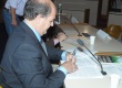 pv0048_012 | 3/10/2011 | A PUC-Rio foi designada para celebrar o Dia Mundial do Habitat de 2011 no Rio de Janeiro. Na imagem, Alain Grimard, diretor da ONU HABITAT na América Latina e Caribe, firma o compromisso das Nações Unidas com a Universidade. |