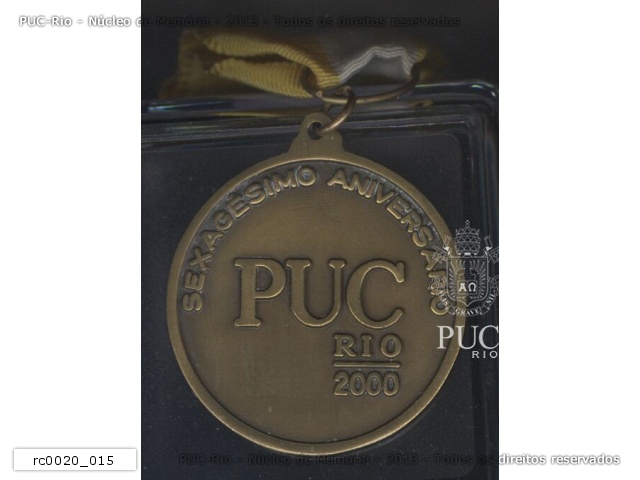 rc0020_015 | 2000 | Verso da medalha em comemoração aos 60 anos da PUC-Rio. |