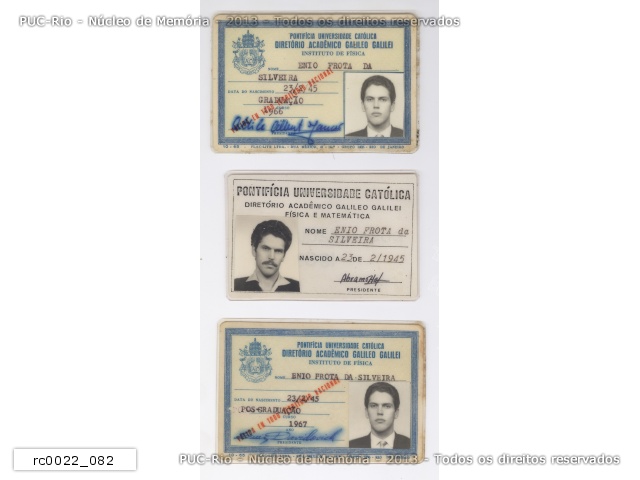 rc0022_082 | 1966 | Carteirinhas do diretório acadêmico do Instituto de Física dos anos 1960. |