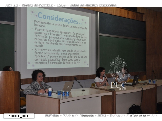 rl0001_001 | 1/9/2011 | Apresentação da prof. Luciana Bessa, doutoranda em Educação pela UERJ, sobre o tema "Vai-e-vem: quem conta um conto, (re) cria a história". Ao lado esquerdo da foto está a prof. Vera Vasconcellos (UERJ) e no lado direto está a prof. Ana Rosa Picanço, também doutoranda em Educação pela UERJ. |
