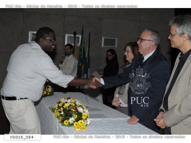 rl0016_103 | 31/8/2012 | O Reitor Pe. Josafá S.J. parabeniza o aluno pela participação no XX Seminário de Iniciação Científica da PUC-Rio. |