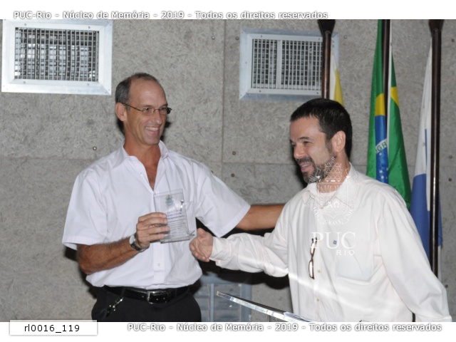 rl0016_111 | 31/8/2012 | Professor Sidnei Paciornik parabeniza o professor André Lacombe pela homenagem recebida. |