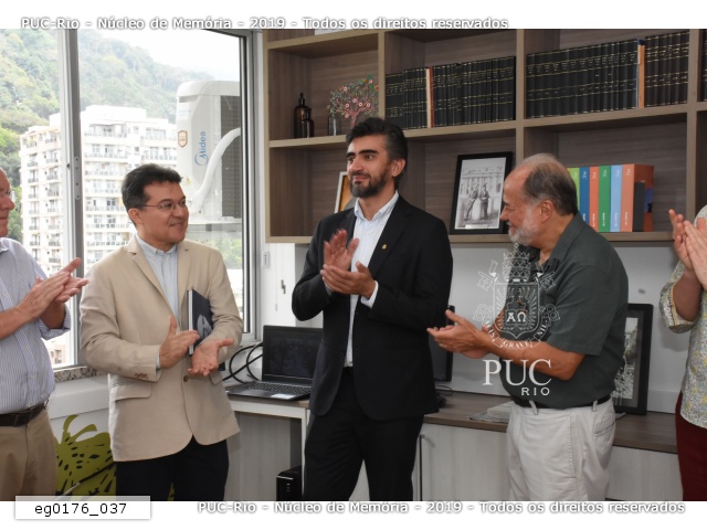 Cerimônia de inauguração da nova sala do Núcleo de Memória da PUC-Rio. |