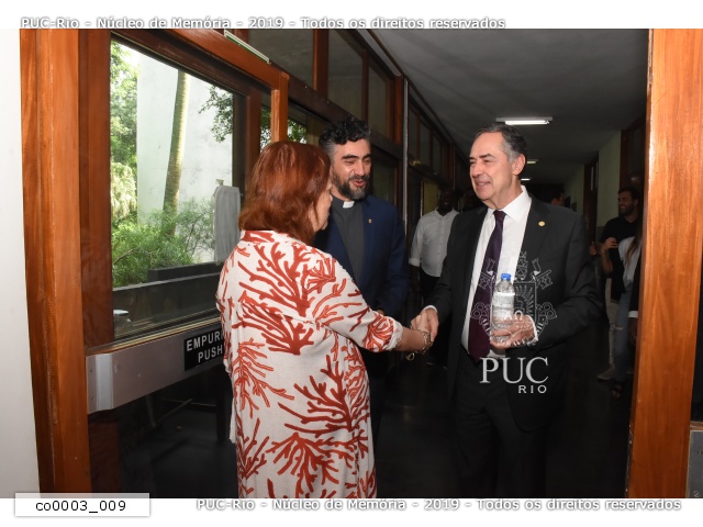 O reitor pe. Anderson S.J. e o pe. Arnaldo recepcionam o Ministro e Presidente do STF Luís Roberto Barroso. |