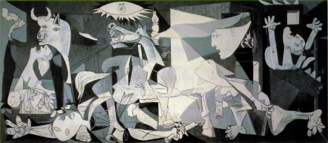 O painel pintado por Pablo Picasso em 1937 foi exposto pela primeira vez por ocasião da Exposição Internacional de Paris, no pavilhão da República Espanhola. A tela pintada a óleo representa o bombardeio da aldeia espanhola de Guernica em 26 de abril de 1937 por aviões da Alemanha nazistas, uma vez que Hitler apoiava o ditador Francisco Franco. Atualmente está no Centro Nacional de Arte Rainha Sofia, em Madrid.