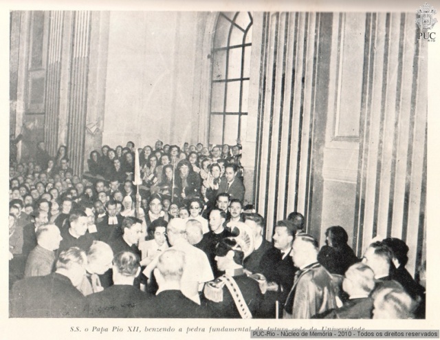 > O Papa Pio XII abençoa a Pedra Fundamental da PUC-Rio.
