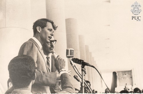 Em 25 de novembro o Senador Robert (Bob) Kennedy visita a PUC-RIO, na inauguração do busto do Presidente John Kennedy feito pelo escultor Leão Velloso e doado pelos alunos.