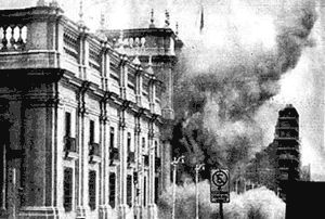 No dia 11 de setembro uma intervenção militar comandada pelo general  Augusto Pinochet, com o apoio dos Estados Unidos, cerca o Palacio de La Moneda, sede do governo chileno.  O presidente Salvador Allende morre durante o golpe militar.