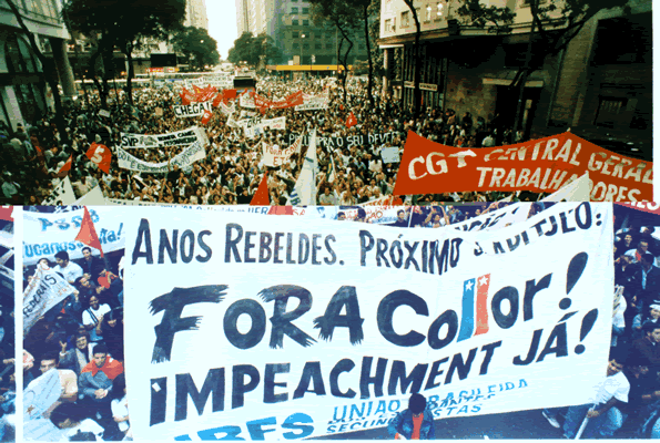 Manifestação pública pelo impeachment de Fernando Collor. > Impeachment do Presidente Fernando Collor. Impeachment do Presidente Fernando Collor. Assume o Vice-Presidente, Itamar Franco.