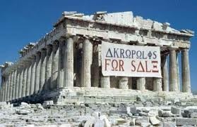 Na Acrópole, a faixa alusiva à crise financeira. > Crise econômico-financeira na Grécia. A crise na Grécia provoca instabilidade na zona do Euro, com reflexos na economia mundial.