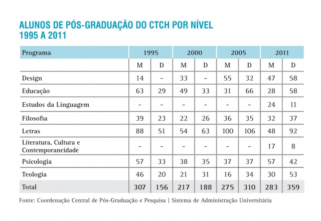 Alunos de Pós-Graduação do CTCH por nível - série histórica