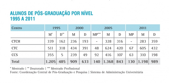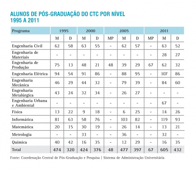 Alunos de Pós-Graduação do CTC por nível - série histórica