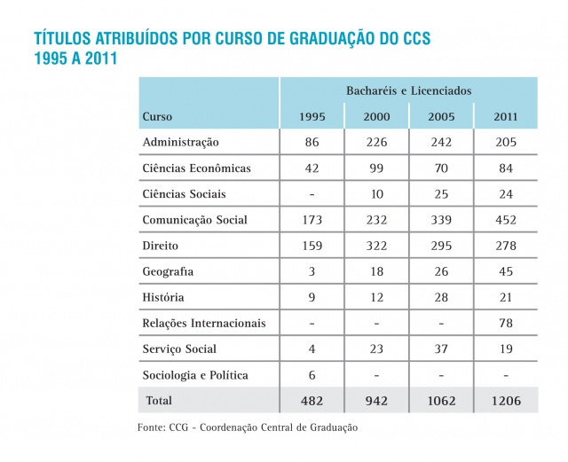 Títulos atribuídos por curso de Graduação do CCS - série histórica