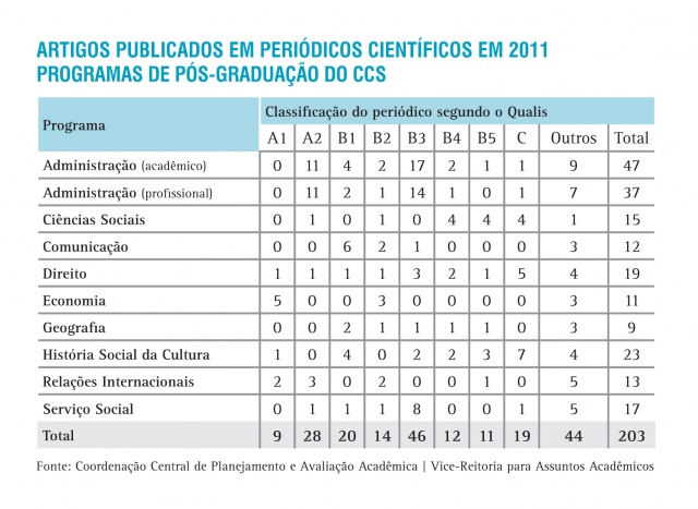 Artigos publicados em periódicos científicos pelos programas de Pós-Graduação do CCS
