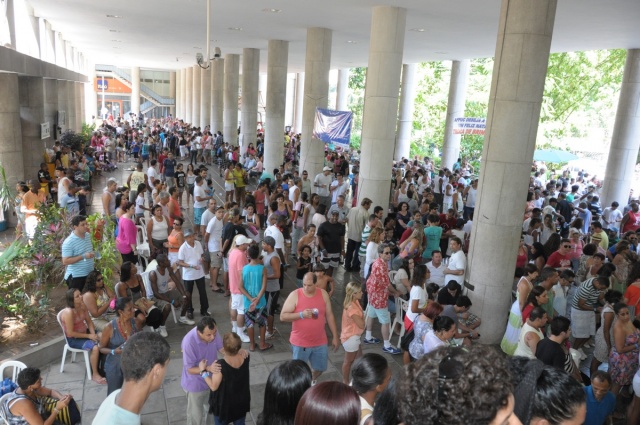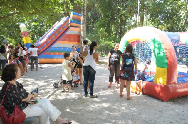 Festa de Natal dos Funcionários. O pilotis do Edifício da Amizade totalmente ocupado pelos funcionários e suas famílias nas diversas atividades. 21/12/2012. Fotógrafo Antônio Albuquerque. Acervo do Núcleo de Memória.