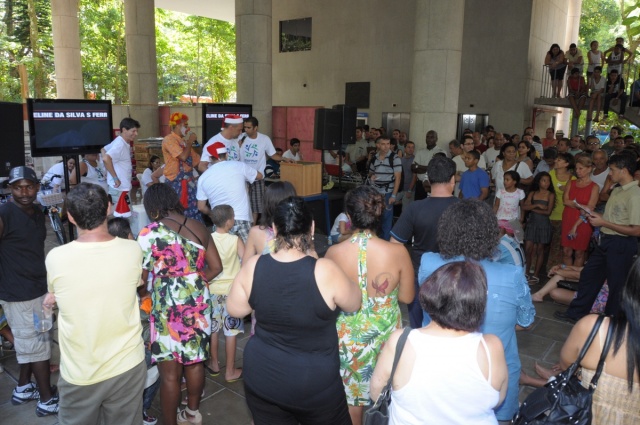 Festa de Natal dos Funcionários. A confraternização ocorreu ao longo de todo o dia, com café da manhã, missa, programação infantil, almoço especial no Bandejão, presença do Papai Noel, da bateria da escola de samba Acadêmicos da Rocinha e sorteio de prêmios. 21/12/2012. Fotógrafo Antônio Albuquerque. Acervo do Núcleo de Memória.