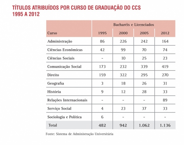 Títulos atribuídos por curso de Graduação do CCS - série histórica