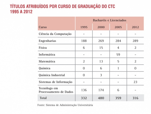 Títulos atribuídos por curso de Graduação do CTC - série histórica