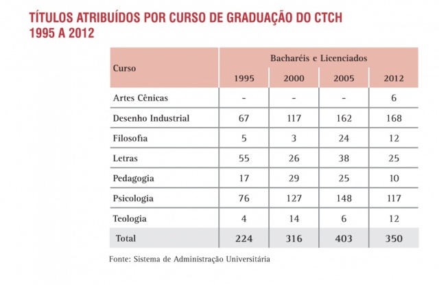 Títulos atribuídos por curso de Graduação do CTCH - série histórica