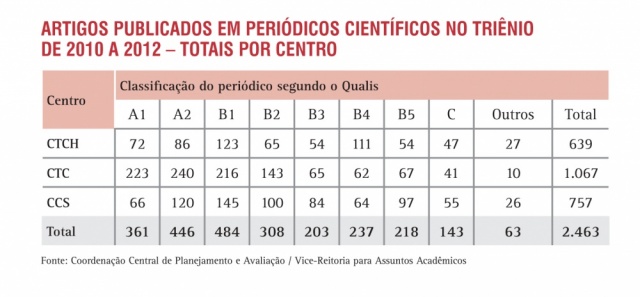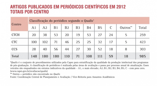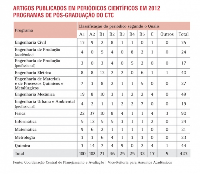 Artigos publicados em periódicos científicos pelos Programas de Pós-Graduação do CTC em 2012 - Classificação do periódico segundo o Qualis