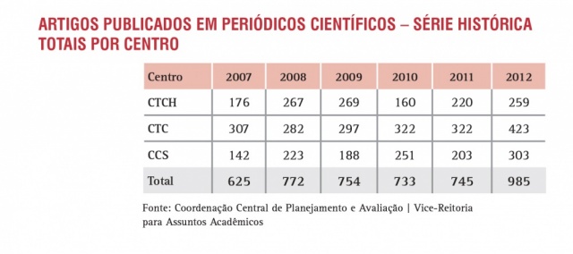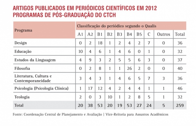 Artigos publicados em periódicos científicos pelos Programas de Pós-Graduação do CTCH em 2012 - Classificação do periódico segundo o Qualis