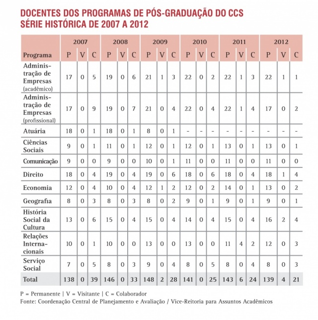 Docentes dos Programas de Pós-Graduação do CCS - Série Histórica 2007 a 2012