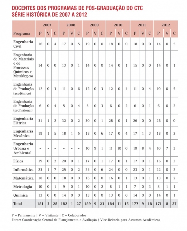 Docentes dos Programas de Pós-Graduação do CTC - Série Histórica 2007 a 2012